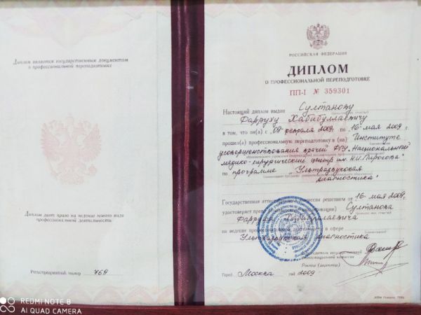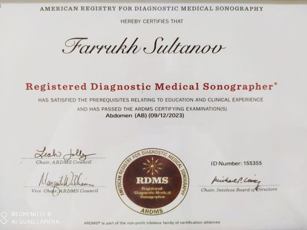 Специалист Султанов Фаррух Хабибуллаевич — профессионал с обширным опытом работы в области ультразвуковой диагностики.