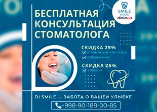 БЕСПЛАТНАЯ консультация стоматолога + СКИДКИ до 25% в Di Smile — твоя улыбка того стоит
