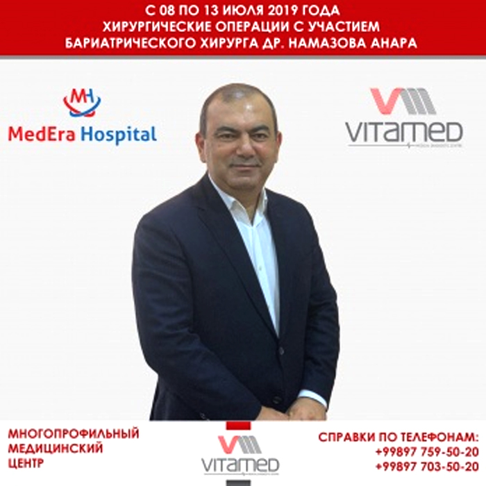 С 8 по 13 июля 2019 года в клинике VITAMED MEDICAL в сотрудничестве с крупнейшим медицинским центром Азербайджана MedEra Hospital планируется проведение хирургических операций с участием ведущего бариатрического хирурга, др. Намазова Анара