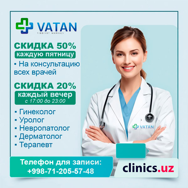 СКИДКА 50% на консультации по пятницам и 20% каждый вечер в клинике Ватан Тиббиёт Маркази