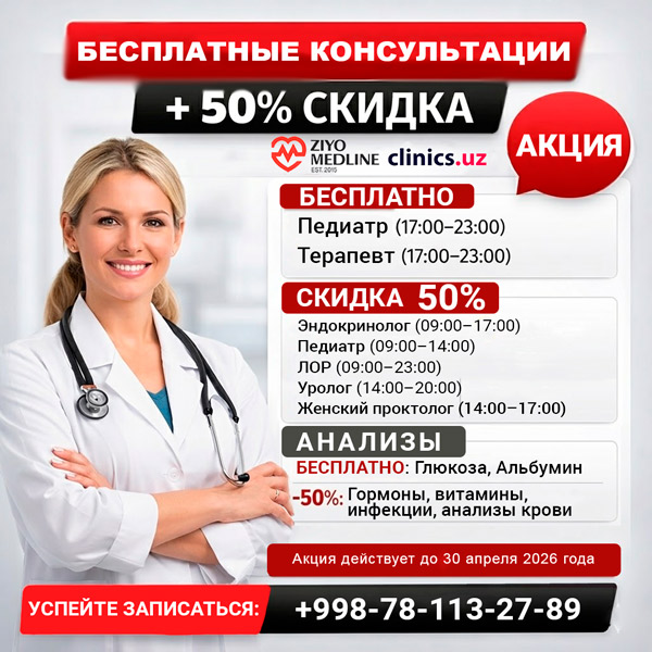 БЕСПЛАТНЫЕ консультации + СКИДКИ 50% на врачей и анализы в ZIYO MEDLINE CLINIC