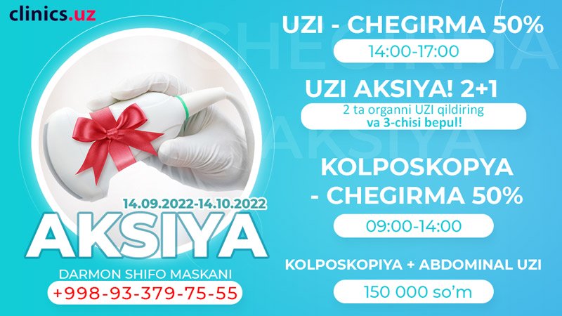 2 ta organni UZI qildiring va 3-chisi bepul!