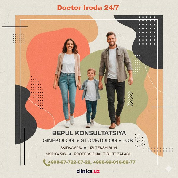 BEPUL konsultatsiya Doctor Iroda klinikasida — UZI va professional tish tozalashga SKIDKA 50%