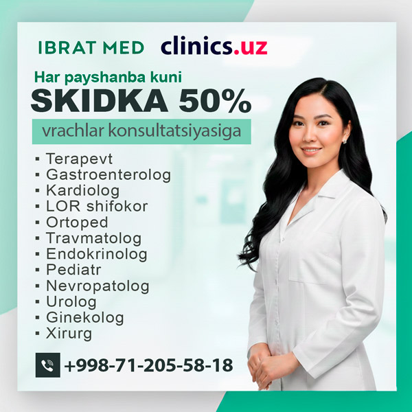 SKIDKA 50% shifokorlar konsultatsiyasiga — faqat har payshanba Ibrat Med klinikasida!