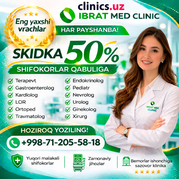 SKIDKA 50% shifokorlar konsultatsiyasiga — aksiya har payshanba kuni Ibrat Med’da!